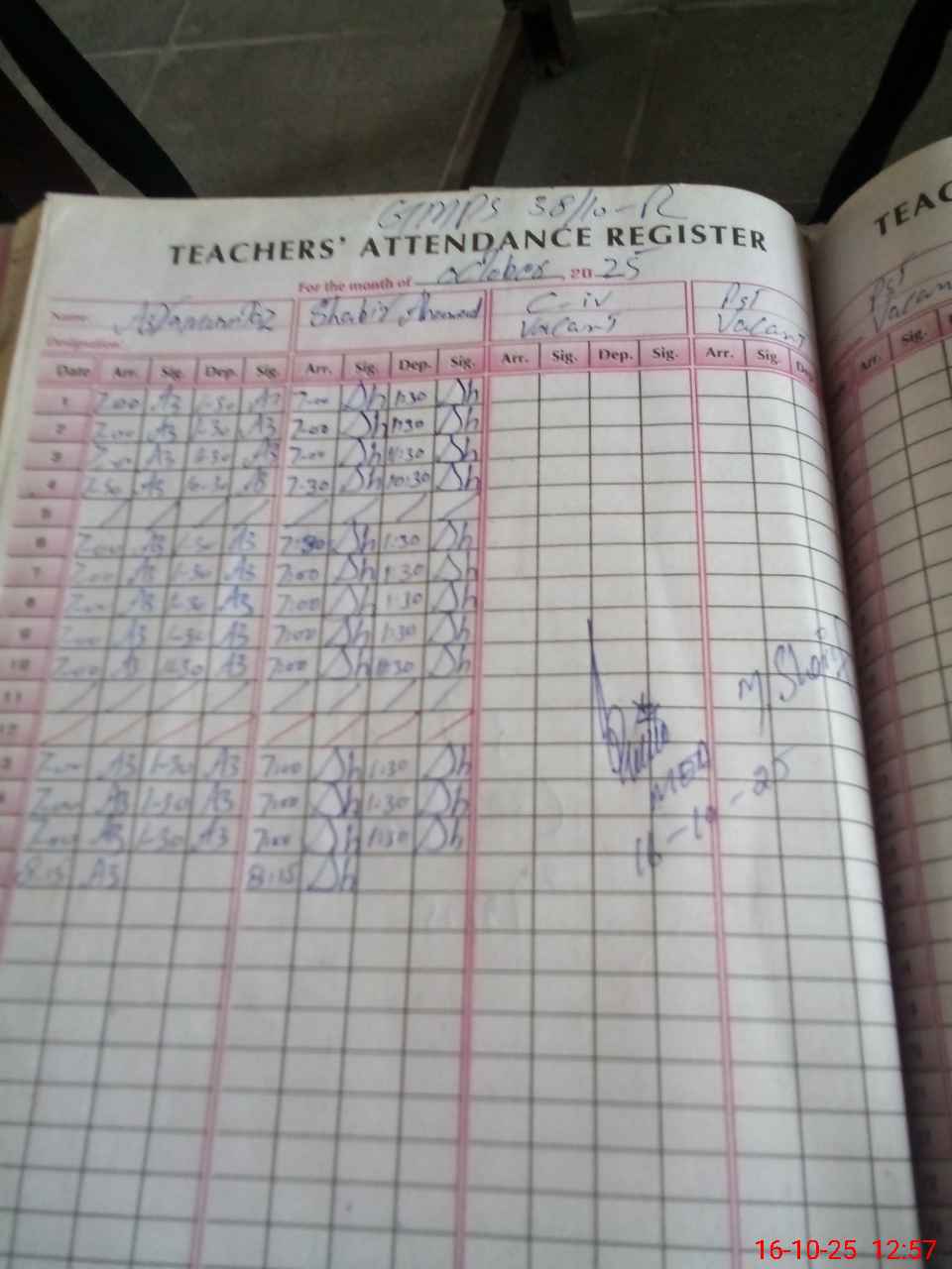 | Name: AZ**** MU**** Designation: (School Headmaster's/Headmistress's) PST Phone/Cell Number: 03**** |
