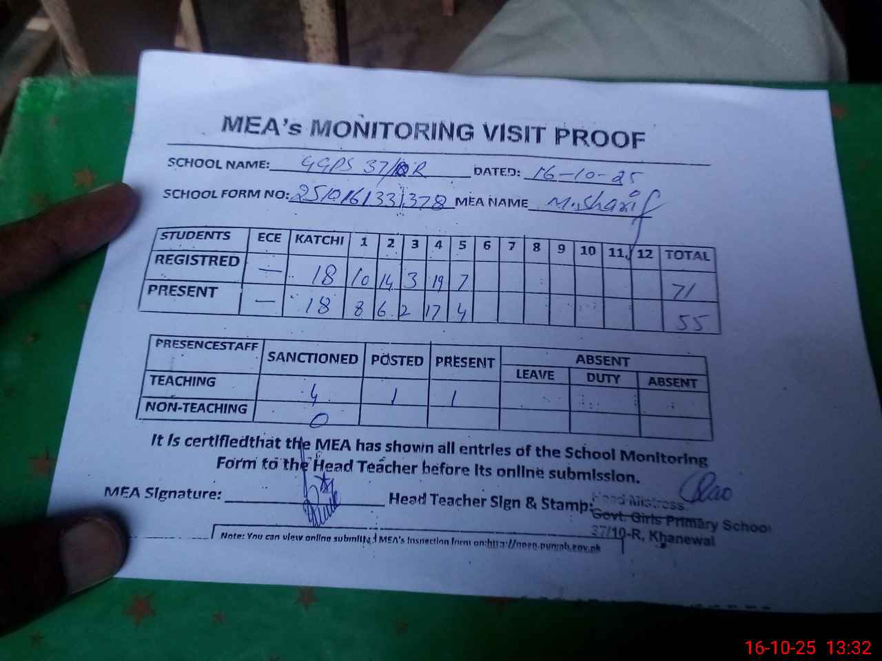 | EMIS Code: 36420440 | Name of School: GGPS 37/10-R, KACHA KHUH | |||