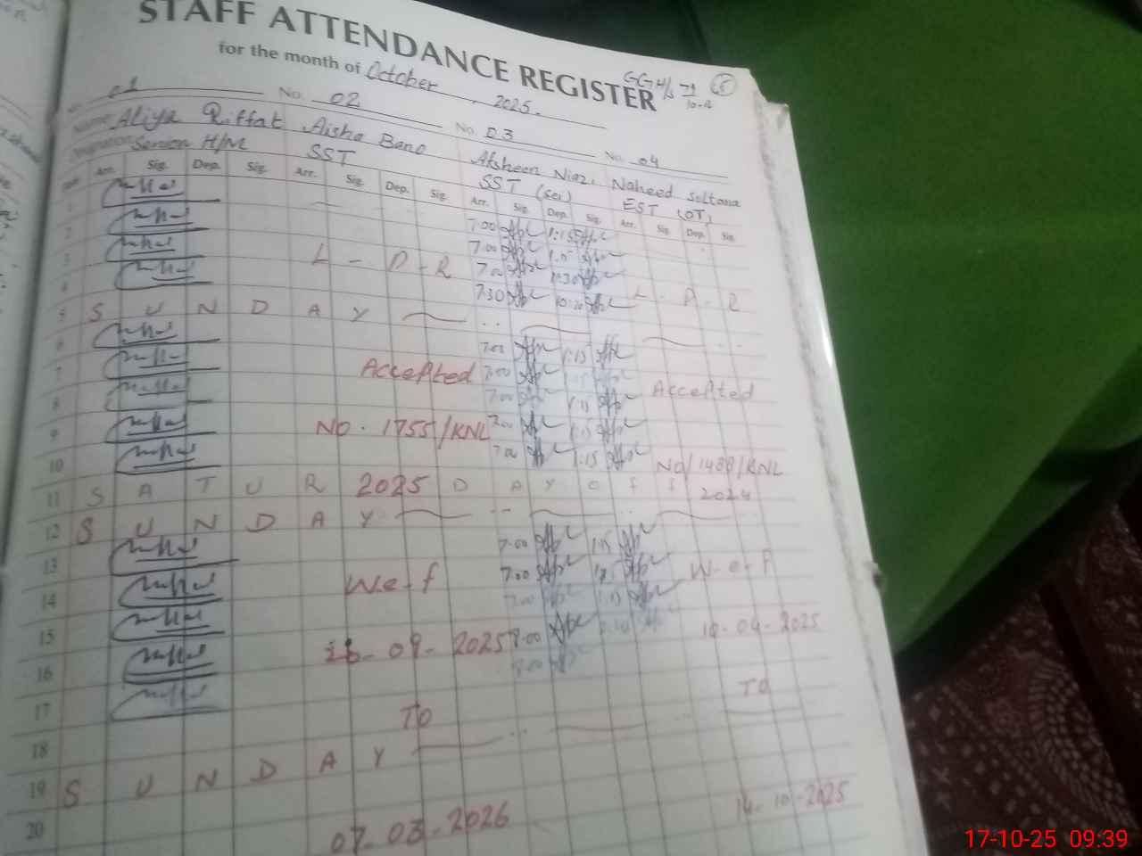 | Monitoring Date: 17-10-2025 | Start Time: 17-10-2025 09:27 AM | End Time: 17-10-2025 09:41 AM | Name of MEA: MU**** SH**** | |