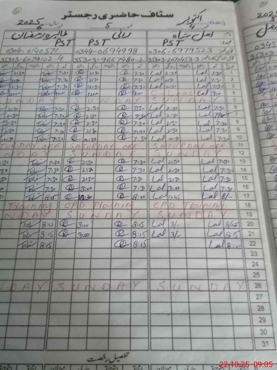 | CNIC | Full Name | Designation | R/C | Absence during last cal. month |