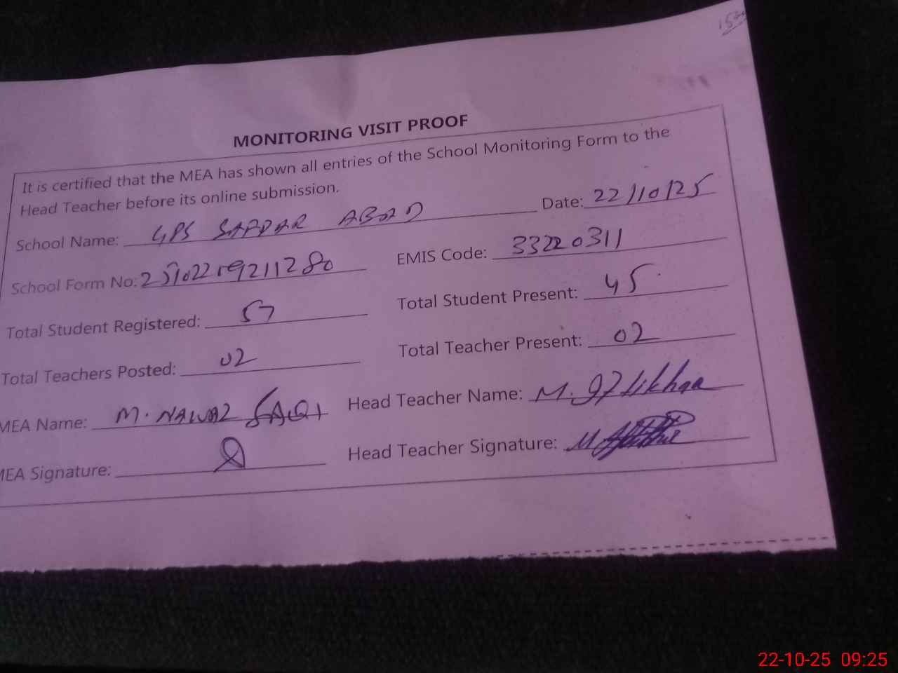 | EMIS Code: 33220311 | Name of School: GPS SAFDAR ABAD | |||