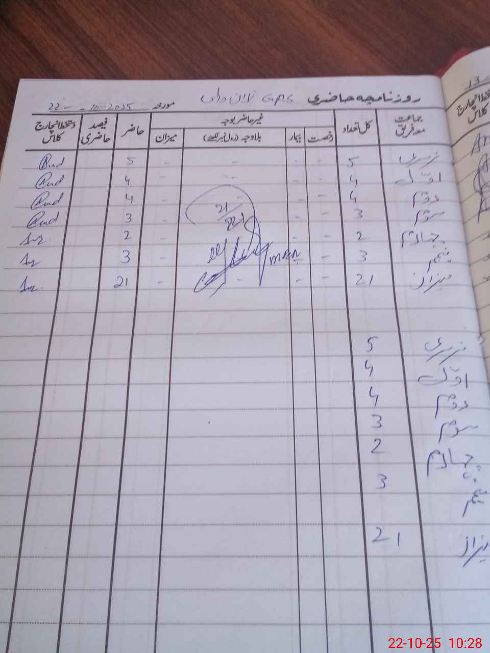 | CNIC | Full Name | Designation | R/C | Absence During Last Calender Month |