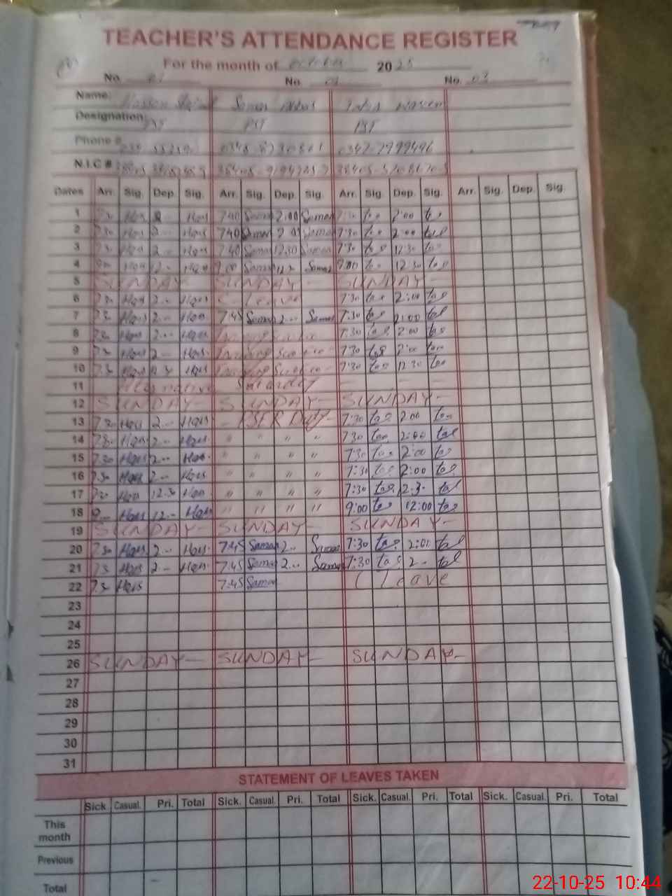 | Name: Ha**** Sh**** Am**** Designation: (School Headmaster's/Headmistress's) PST SCI Phone/Cell Number: 03**** |