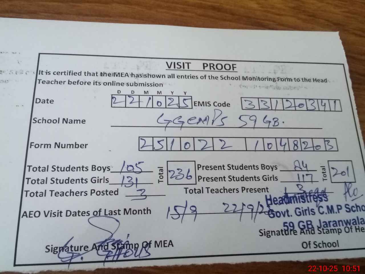| Certified that this School was Inspected by the Undersigned MEA/DMO Today and the Information Stated Above is as Per Record. | |||||