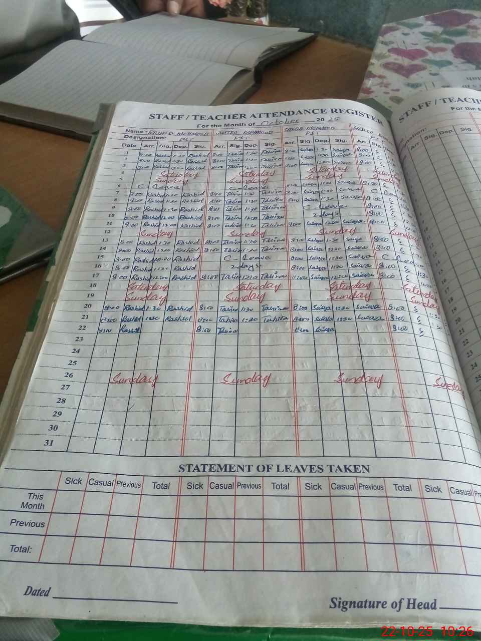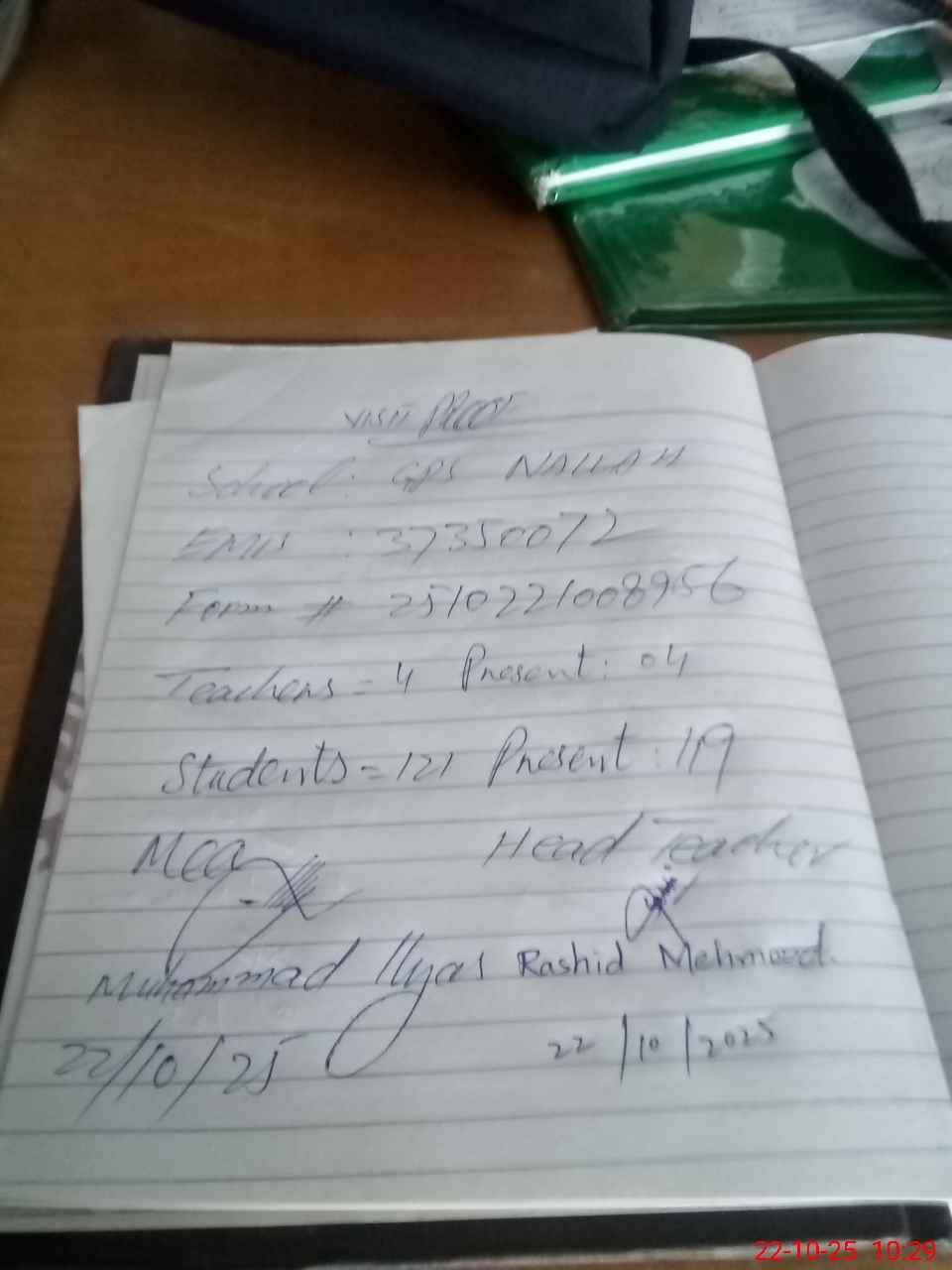 | Attendance Register | Head Teacher | MEA with School | Visit Proof |