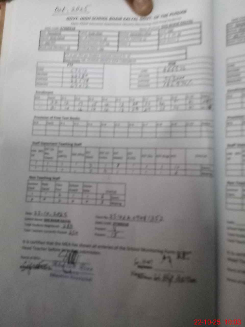 | Certified that this School was Inspected by the Undersigned MEA/DMO Today and the Information Stated Above is as Per Record. | |||||