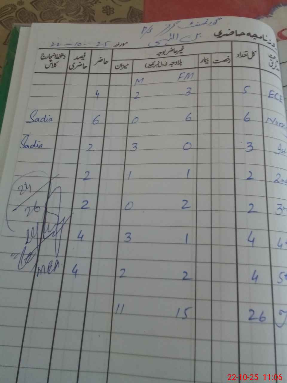 | No. of Students Present - Female | 2 | 0 | 6 | 0 | 1 | 2 | 1 | 2 | 14 | |||||||