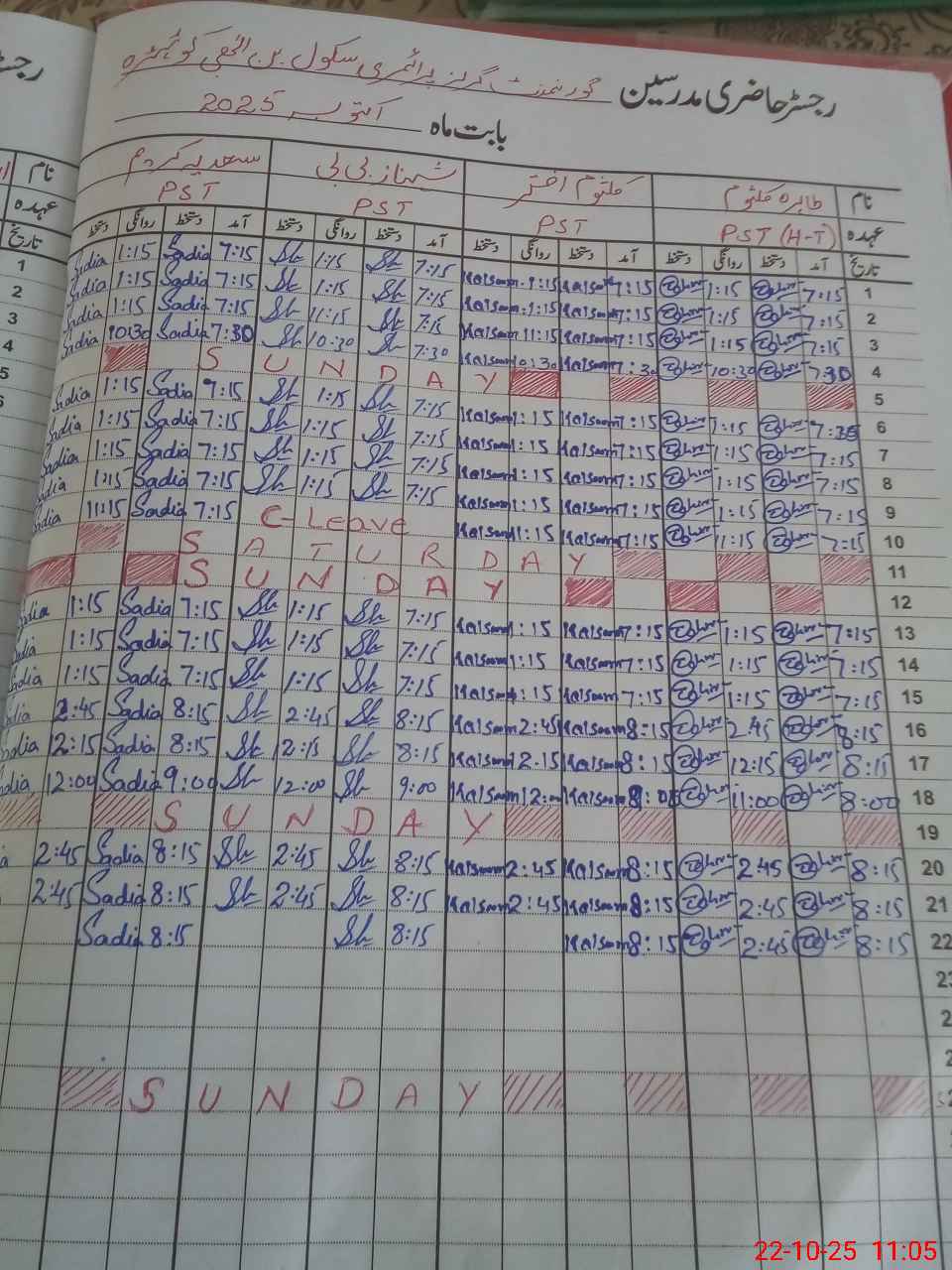 | CNIC | Full Name | Designation | R/C | Absence During Last Calender Month |