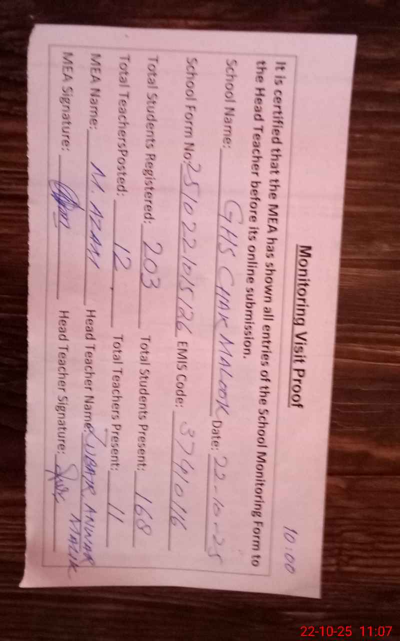 | EMIS Code: 37410116 | Name of School: GHS CHAK MALOOK | |||