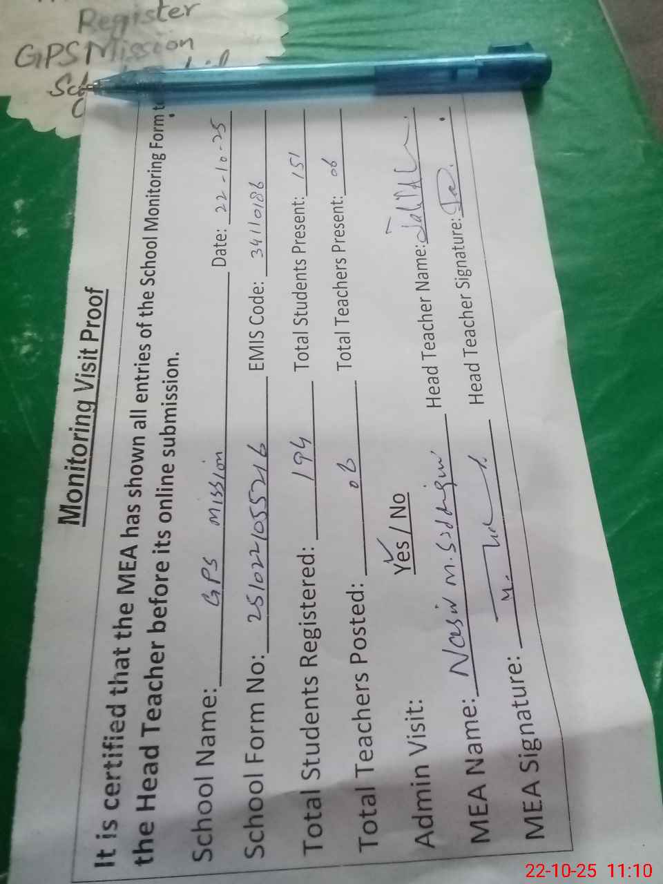| EMIS Code: 34110186 | Name of School: GPS MISSION | |||