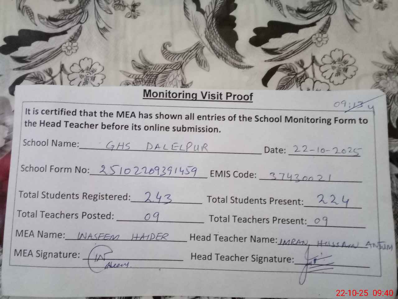 | EMIS Code: 37430021 | Name of School: GHS DALELPUR | |||