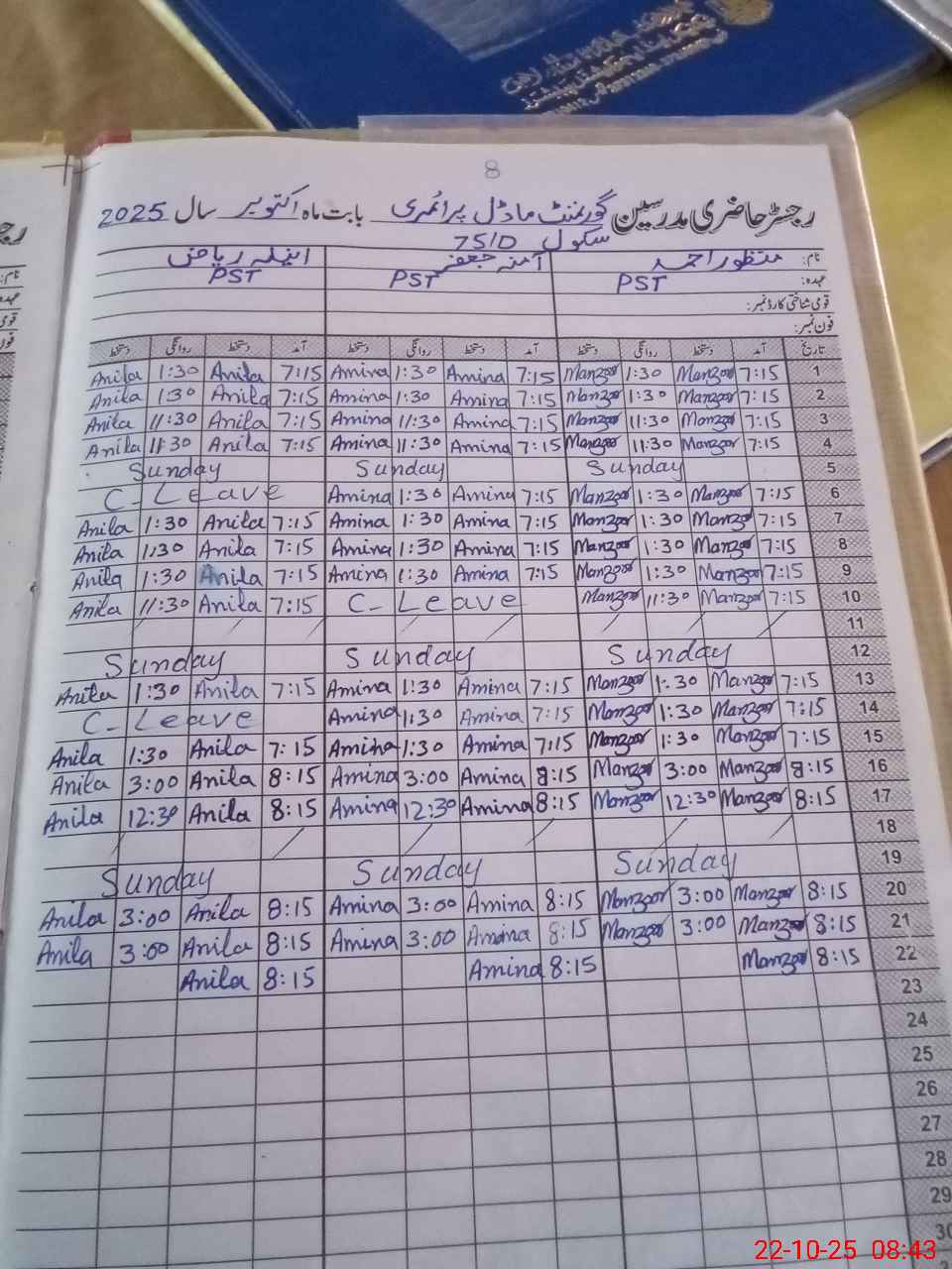 | CNIC | Full Name | Designation | R/C | Absence During Last Calender Month |