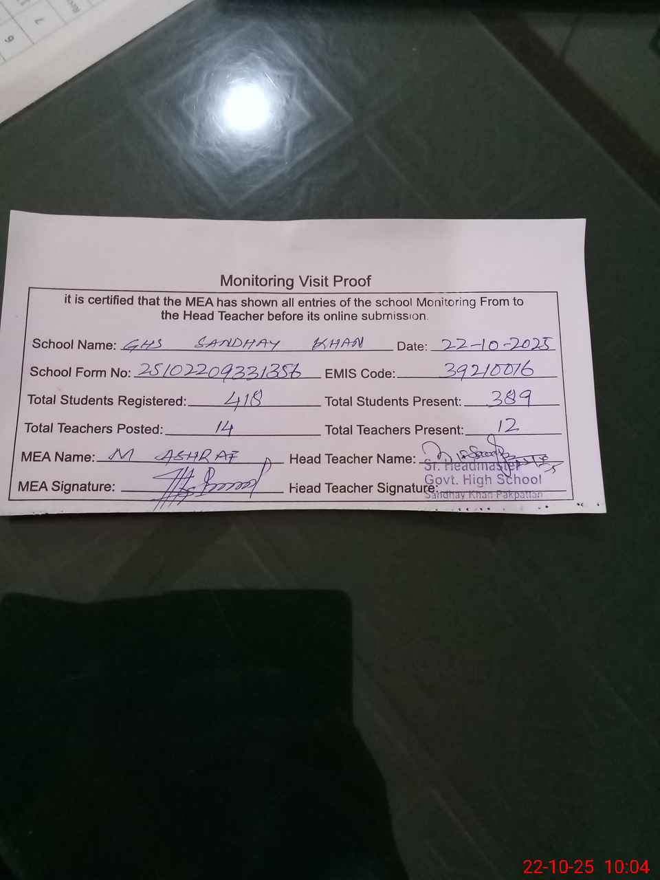 | EMIS Code: 39210016 | Name of School: GHS CHAK SANDHAY KHAN | |||