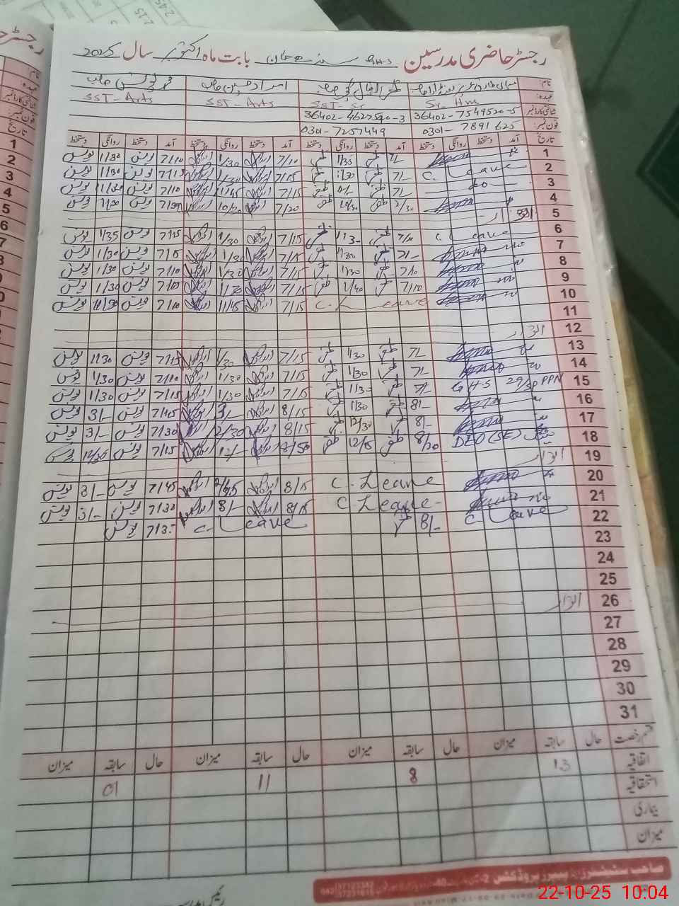 | 36**** | Ta**** Az**** | Regular | 2 | 0 | 8 | 0 | 0 | 0 | 0 | 0 | 2 | Absent (Un-Authorized) | |