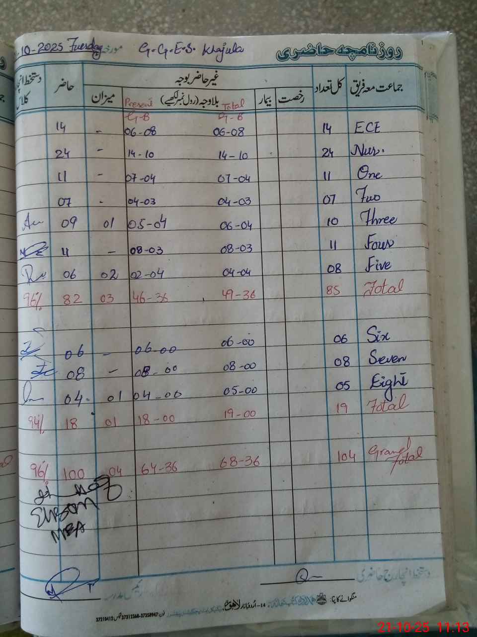 | ECE | Un-admt | K | 1 | 2 | 3 | 4 | 5 | 6 | 7 | 8 | Total | |||||