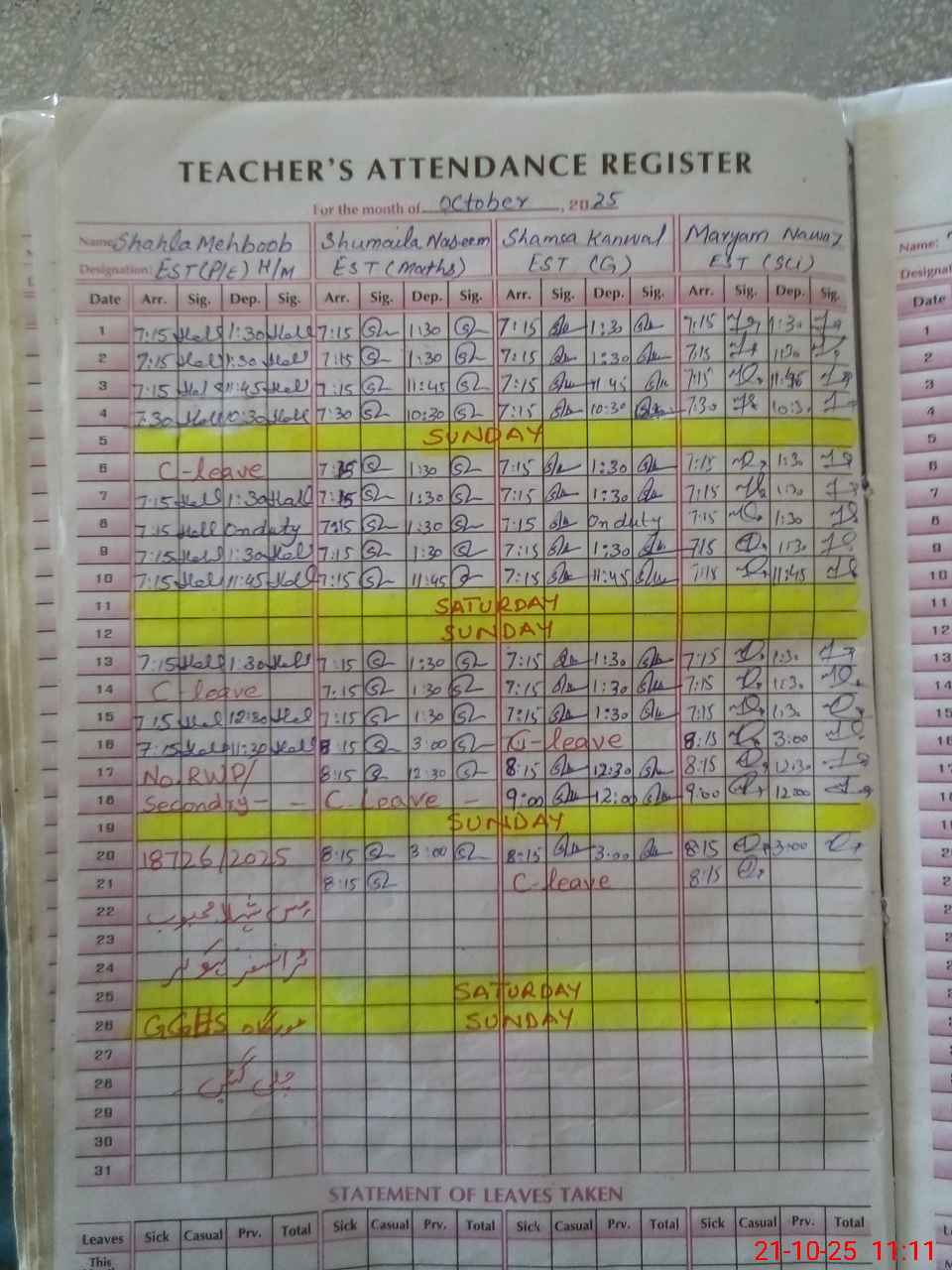 | 37**** | Sh**** Ka**** | 3 | 1 | 0 | 0 | 0 | 0 | 0 | 0 | 0 | 0 | 0 | Absent (Un-Authorized) |