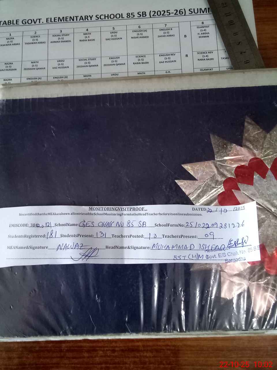 | EMIS Code: 38420121 | Name of School: GES CHAK NO.85 SB | |||
