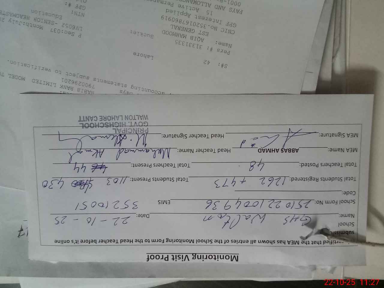 | Certified that this School was Inspected by the Undersigned MEA/DMO Today and the Information Stated Above is as Per Record. | |||||