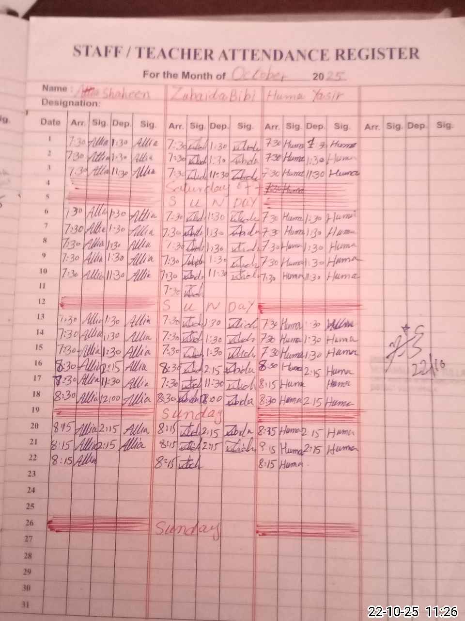 | CNIC | Full Name | Designation | R/C | Absence during last cal. month |