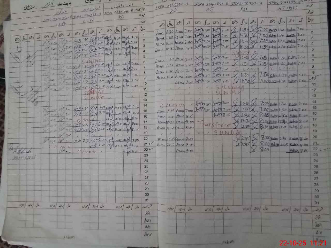 | CNIC | Full Name | Designation | R/C | Absence During Last Calender Month |
