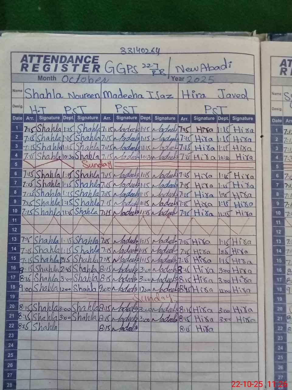 | Monitoring Date: 22-10-2025 | Start Time: 22-10-2025 10:59 AM | End Time: 22-10-2025 11:31 AM | Name of MEA: MU**** SH**** MU**** | |