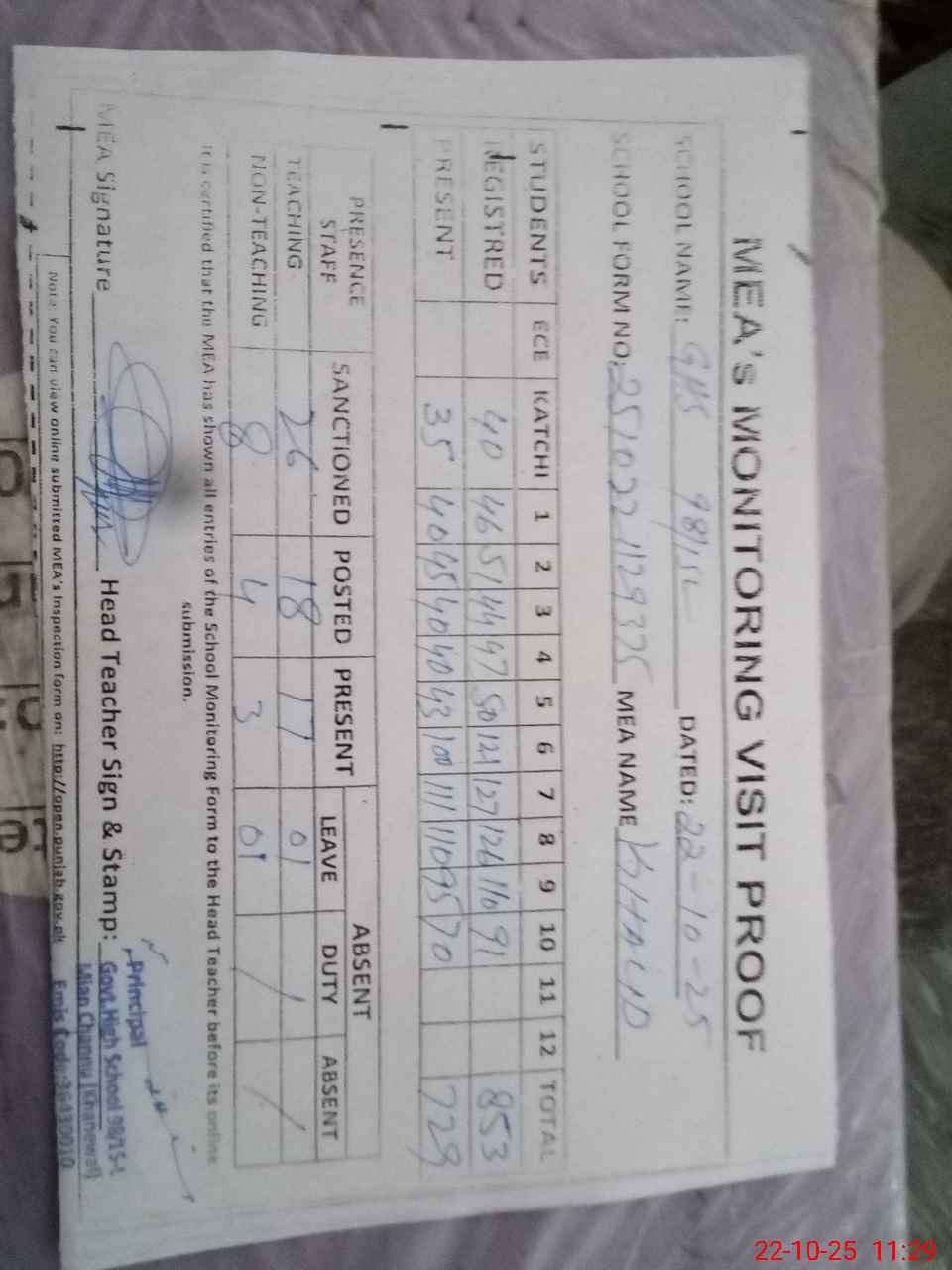 | EMIS Code: 36430010 | Name of School: GHS 98/15-L, MIAN CHUNNU | |||