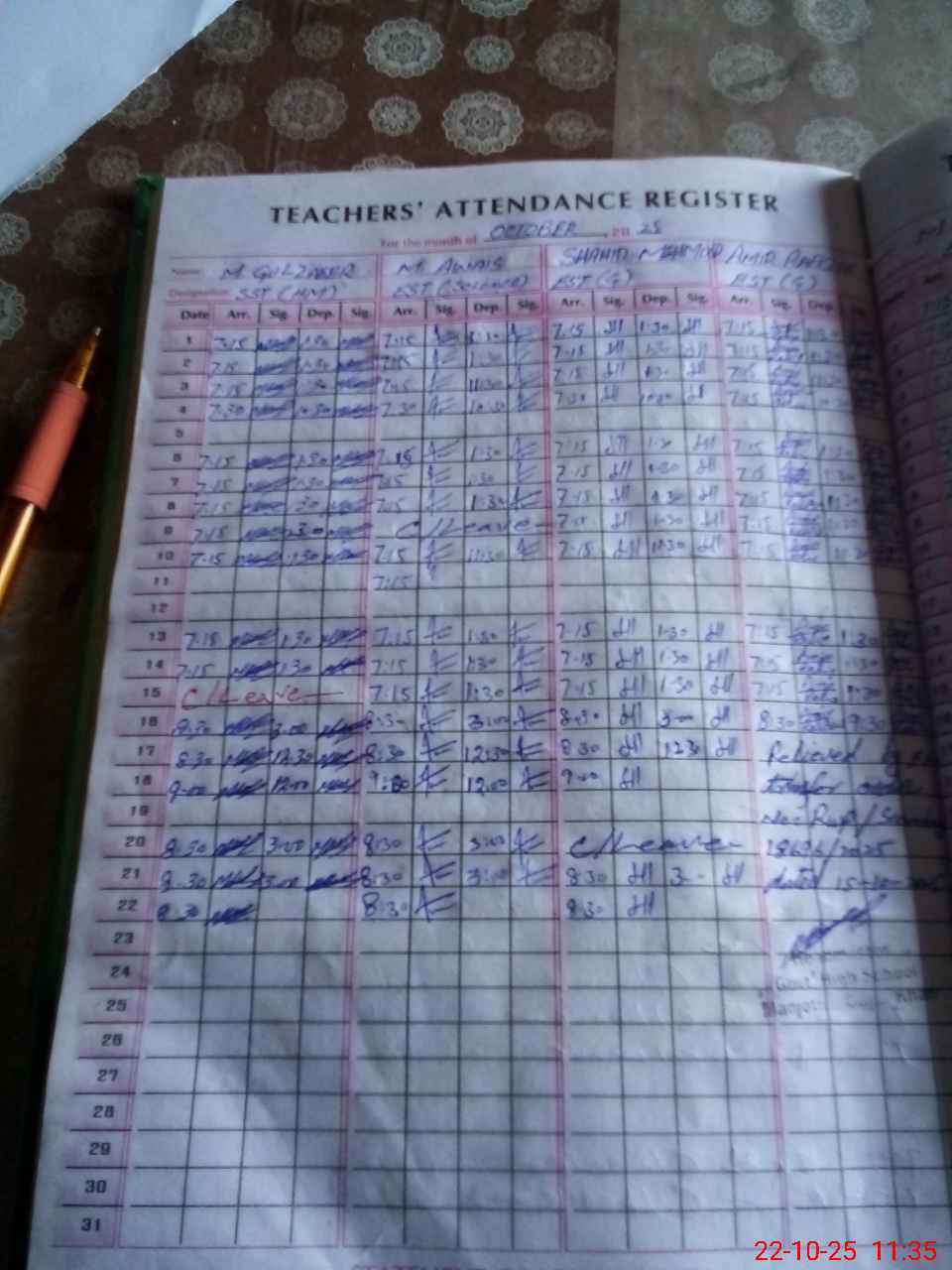 | CNIC | Full Name | Designation | R/C | Absence during last cal. month |