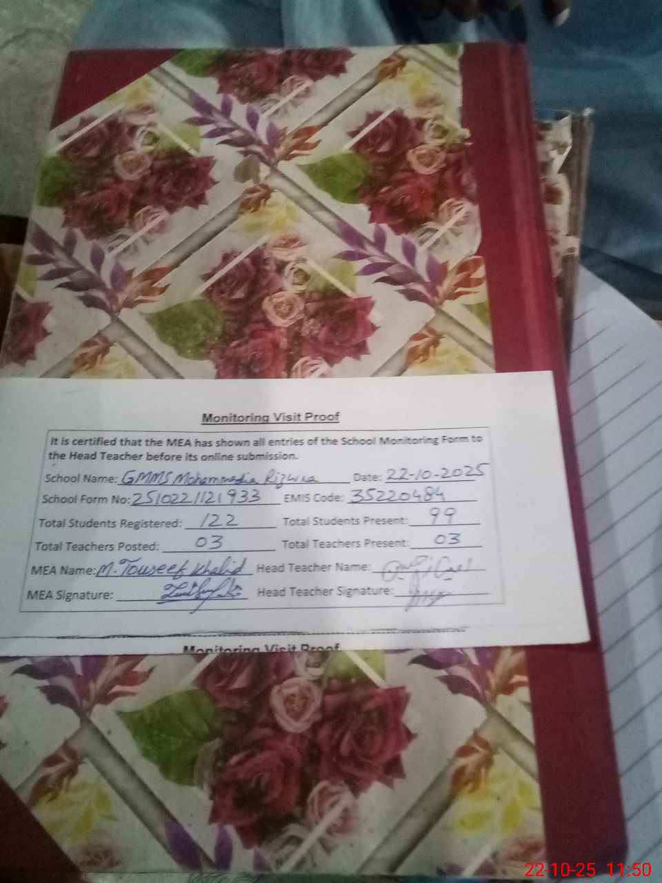 | EMIS Code: 35220484 | Name of School: GMMS MOHAMMADIA RIZVIA AKRAM PARK SANDA KHURD LAHORE | |||