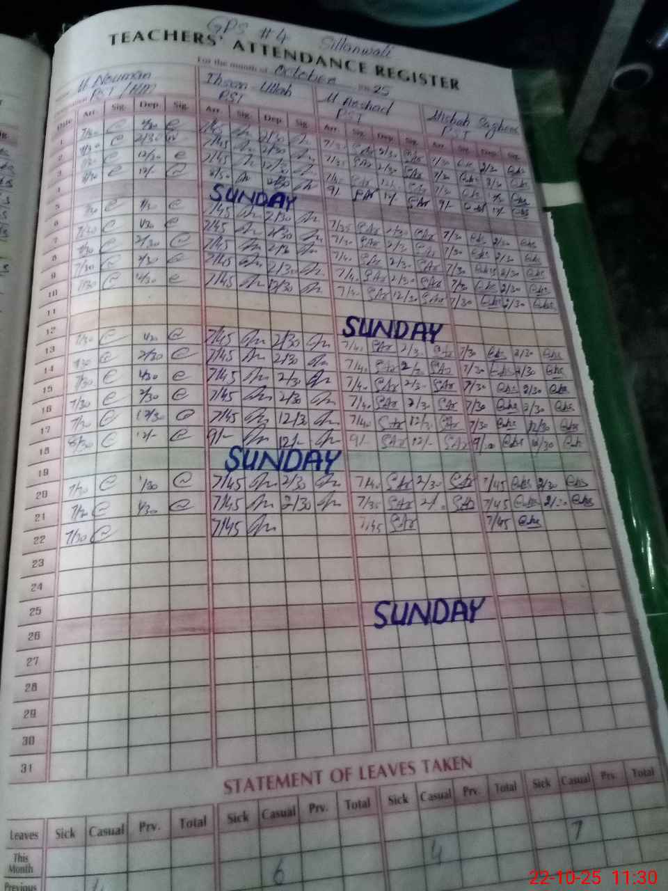 | CNIC | Full Name | Designation | R/C | Absence During Last Calender Month |
