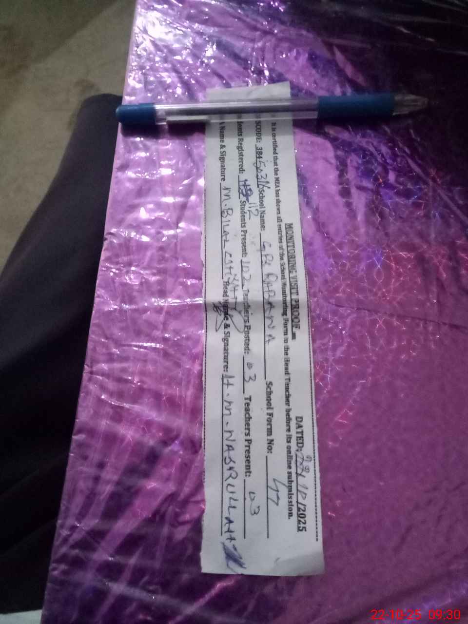 | Attendance Register | Head Teacher | MEA with School | Visit Proof |