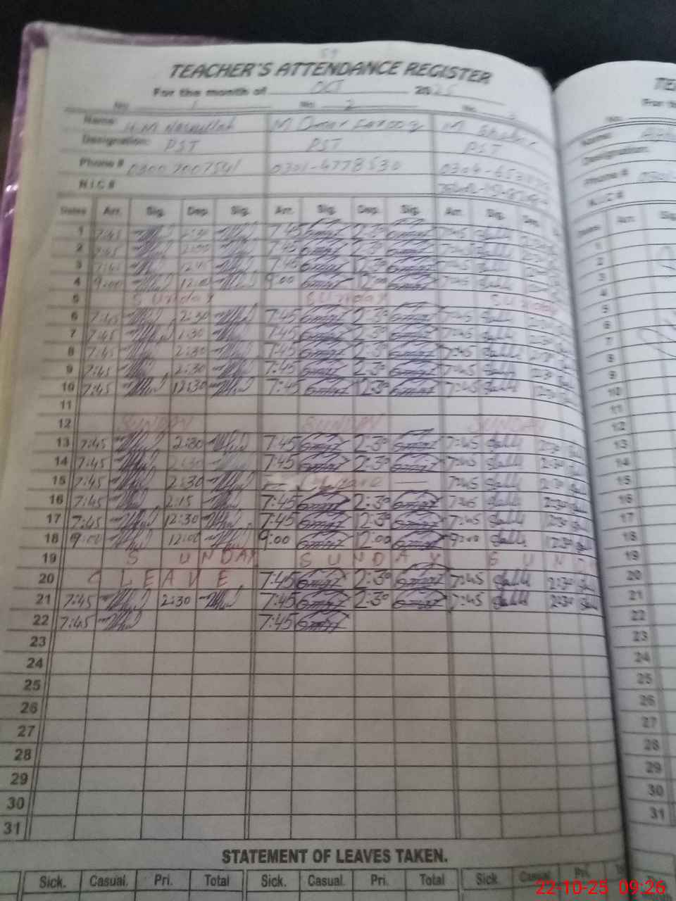 | Name: HA**** MU**** NA**** Designation: (School Headmaster's/Headmistress's) PST Phone/Cell Number: 03**** |