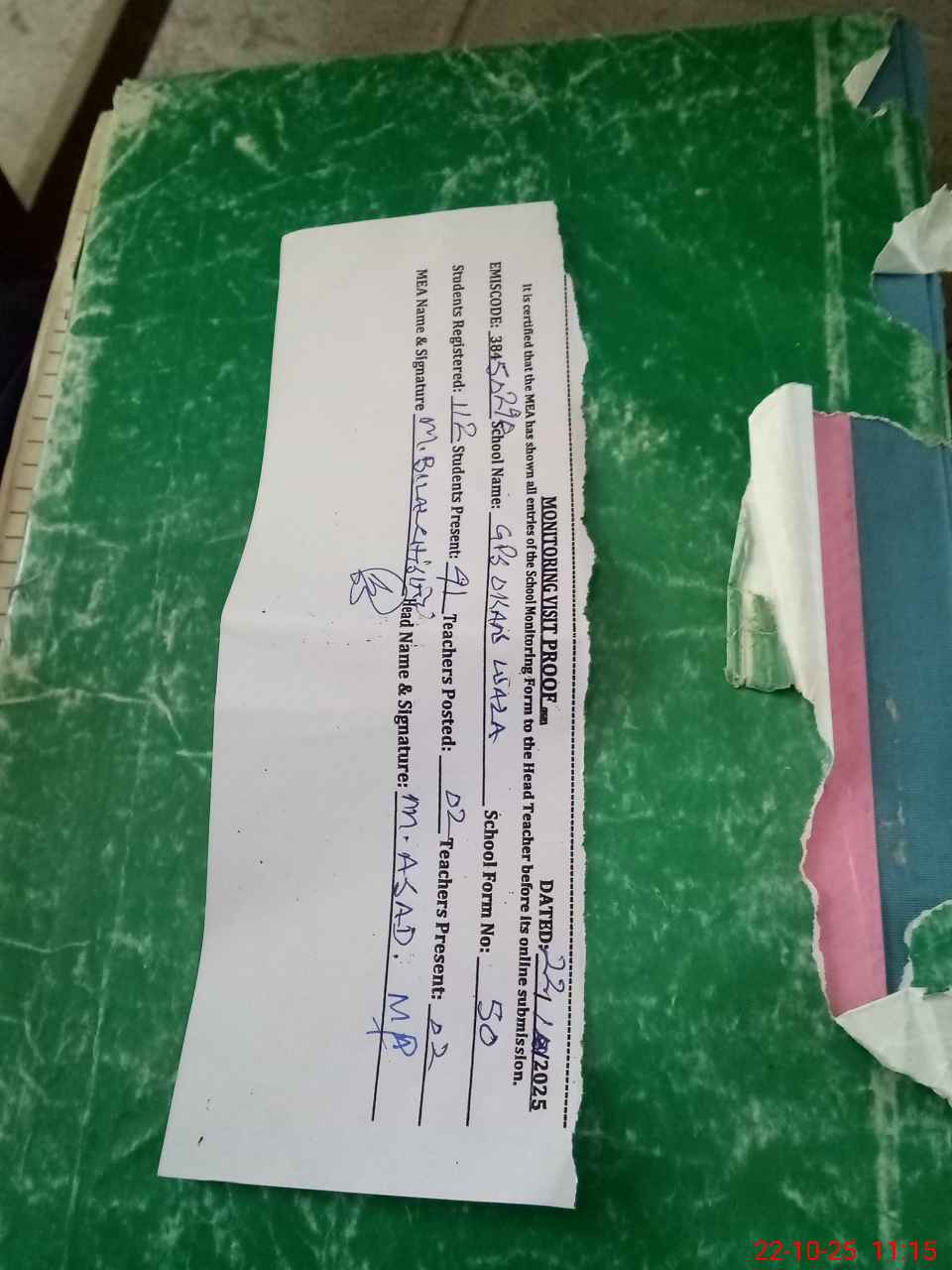 | Certified that this School was Inspected by the Undersigned MEA/DMO Today and the Information Stated Above is as Per Record. | |||||