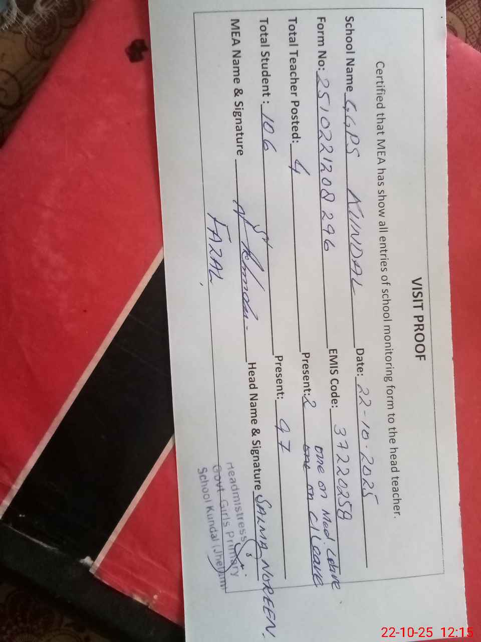 | EMIS Code: 37220258 | Name of School: GGPS KUNDAL | |||
