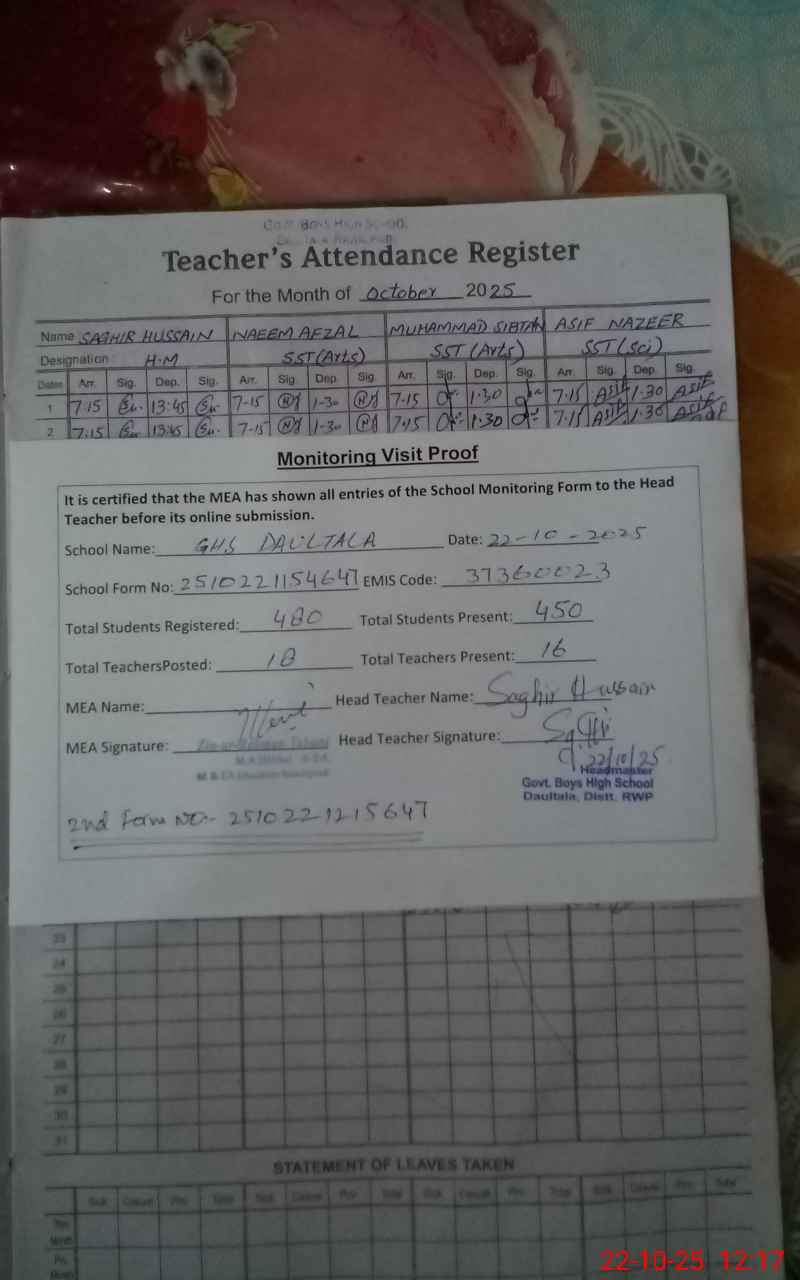 | EMIS Code: 37360023 | Name of School: GHS DAULTALA | |||