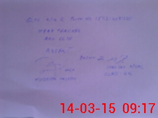 | Monitoring Date: 14-03-2015 | Start Time: 14-03-2015 09:03 AM | End Time: 14-03-2015 09:18 AM | Name of MEA: Z-**** Ha**** | |