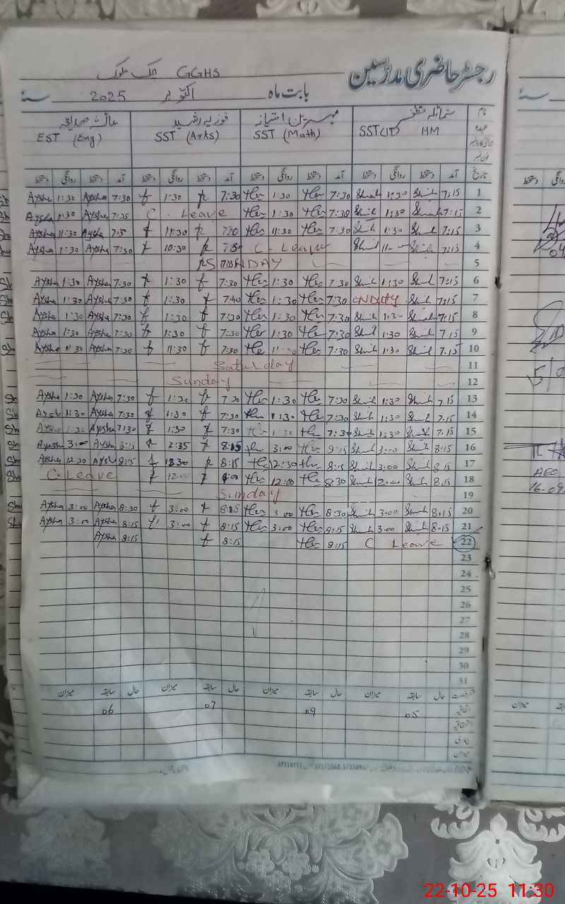| 37**** | Sh**** Mu**** | Regular | 1 | 0 | 0 | 0 | 0 | 0 | 0 | 0 | 1 | Absent (Un-Authorized) | |