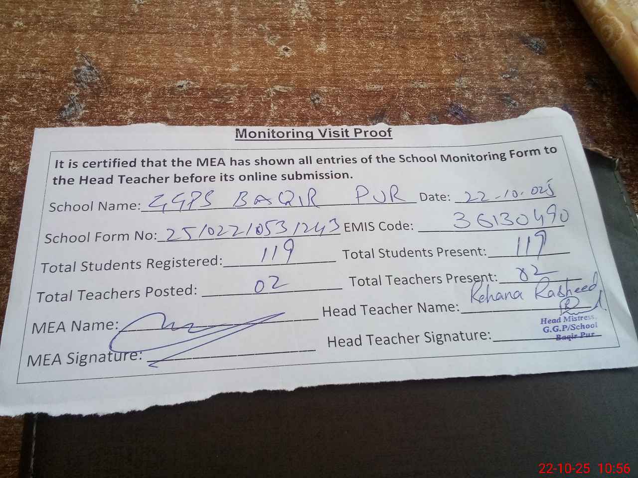 | EMIS Code: 36130490 | Name of School: GGPS BAQIR PUR | |||
