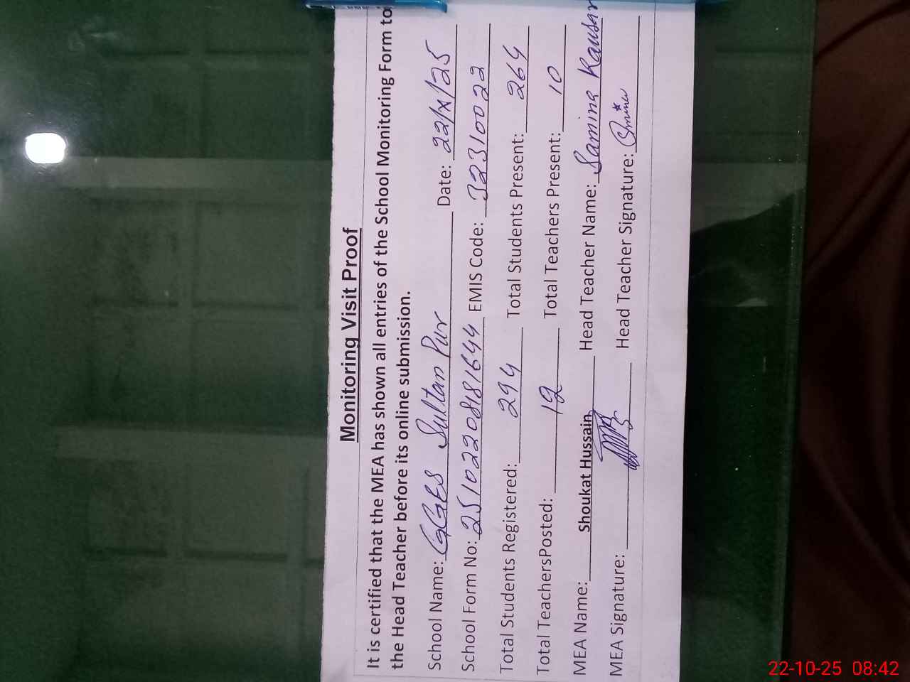 | EMIS Code: 32310022 | Name of School: GGES SULTAN PUR | |||