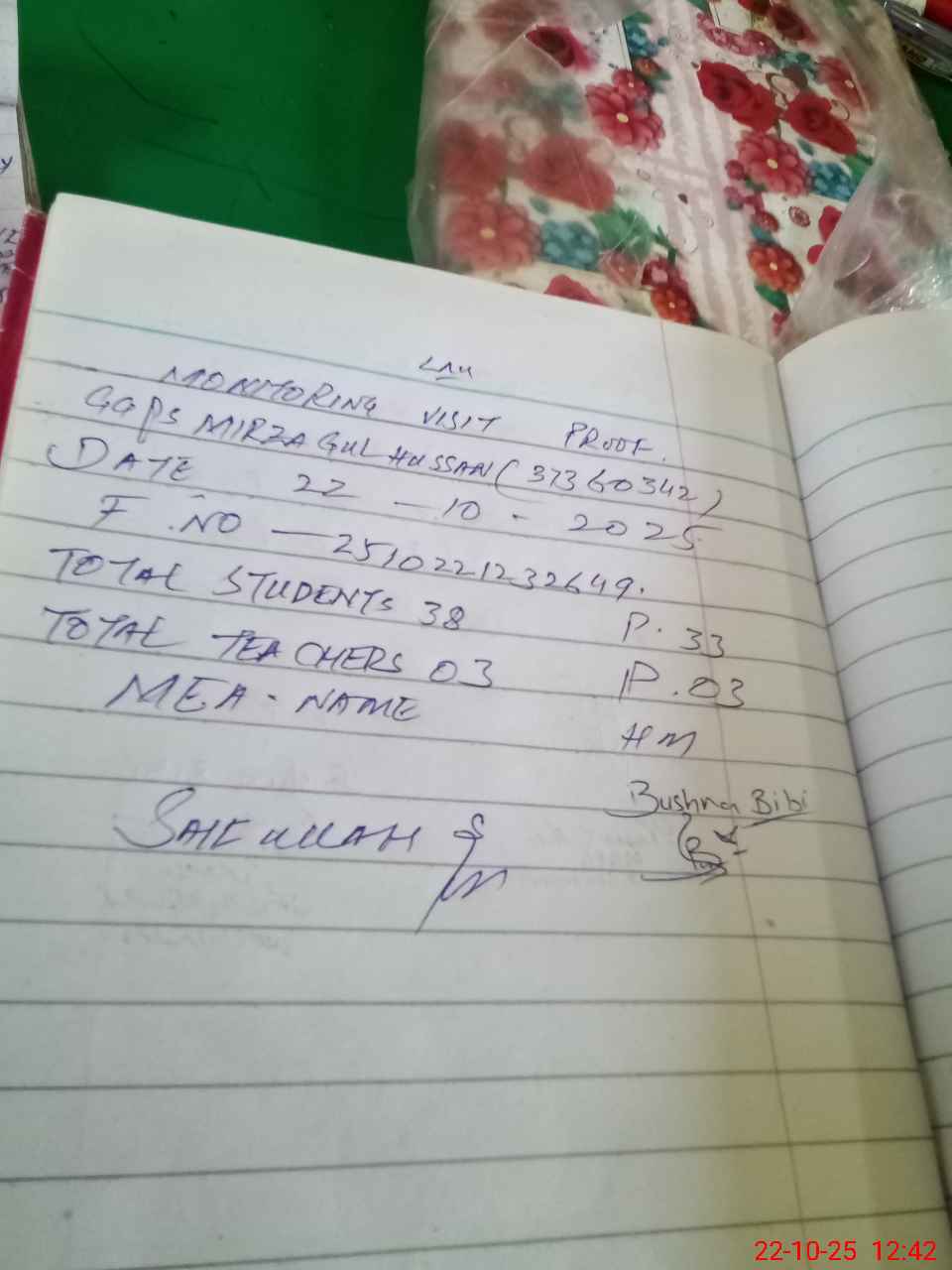 | EMIS Code: 37360342 | Name of School: GGPS DHOKE MIRZA GUL HASSAN | |||