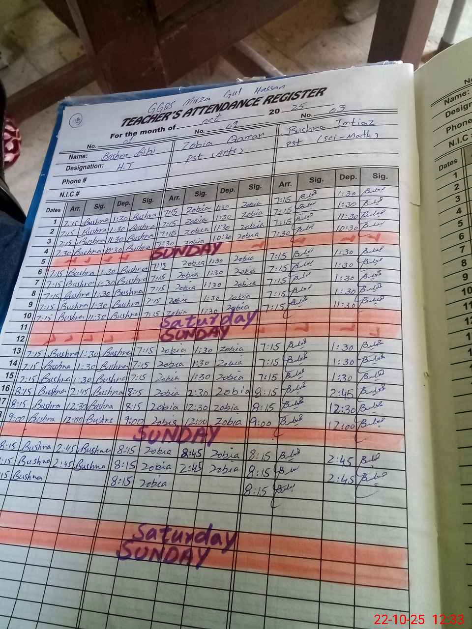 | Name: Bu**** BiBi Designation: (School Headmaster's/Headmistress's) ESE Sci Math Phone/Cell Number: 03**** |