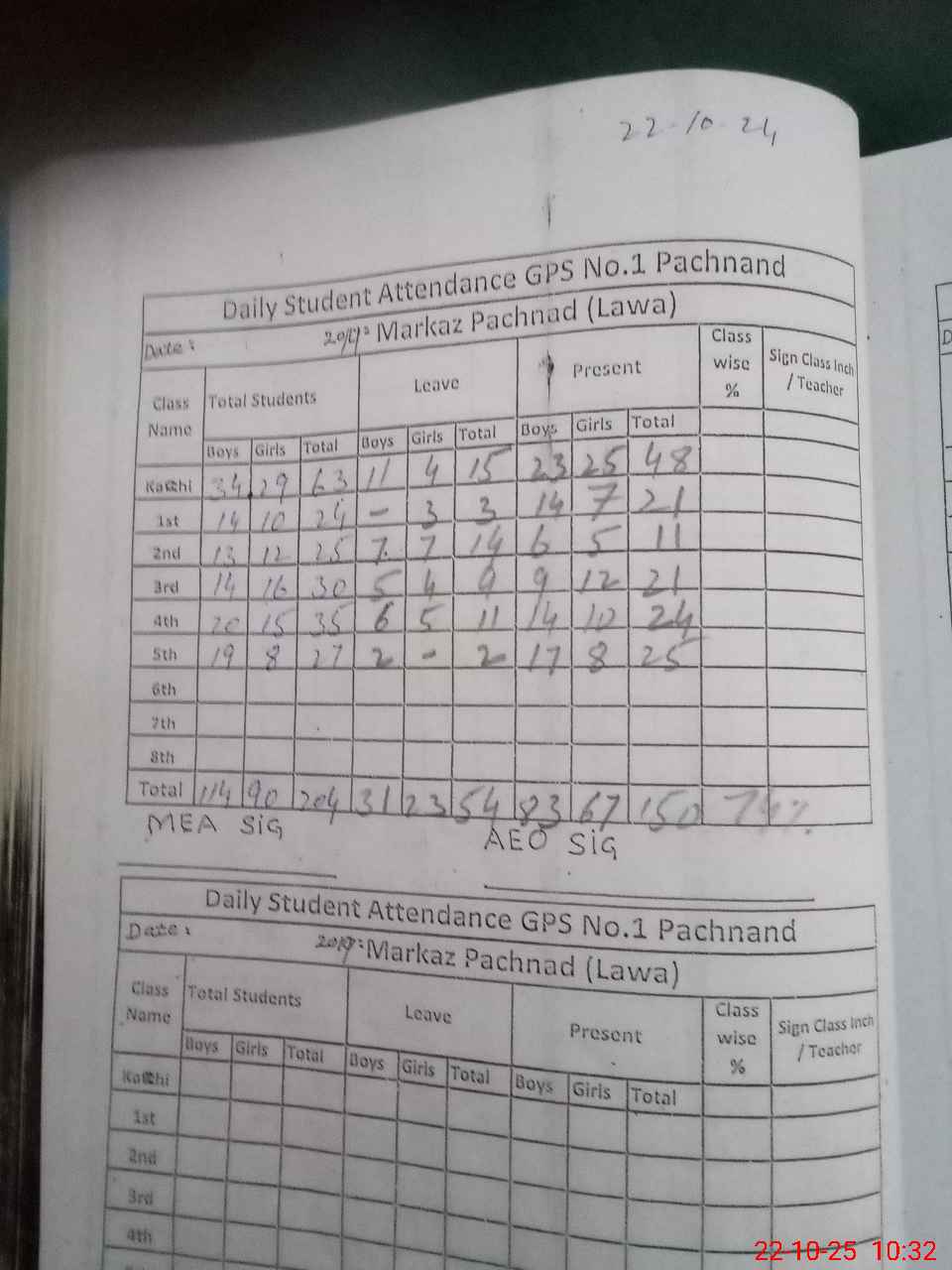 | Total Students Present | 0 | 0 | 48 | 21 | 11 | 21 | 24 | 25 | 150 | |||||||