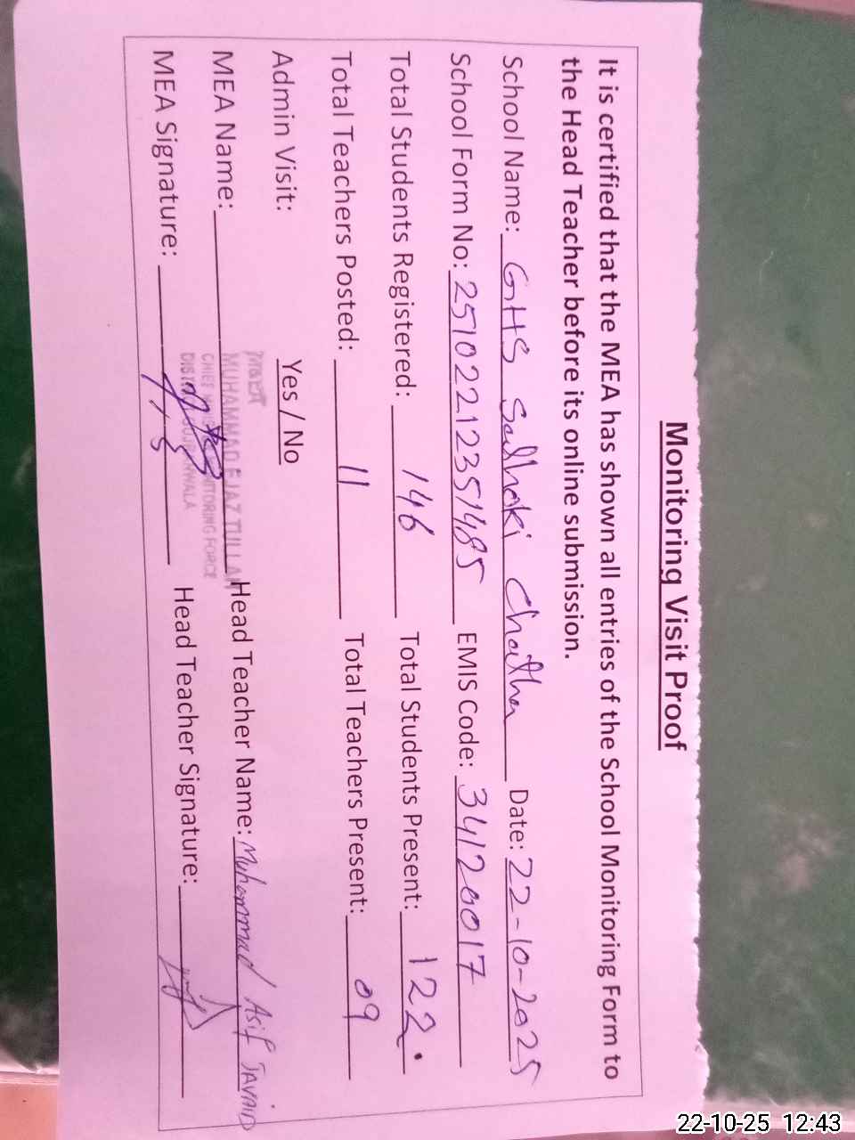 | EMIS Code: 34120017 | Name of School: GHS SALHOKE CHATHA | |||