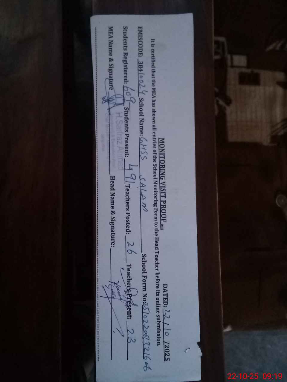 | EMIS Code: 38410024 | Name of School: GHSS SALAM | |||