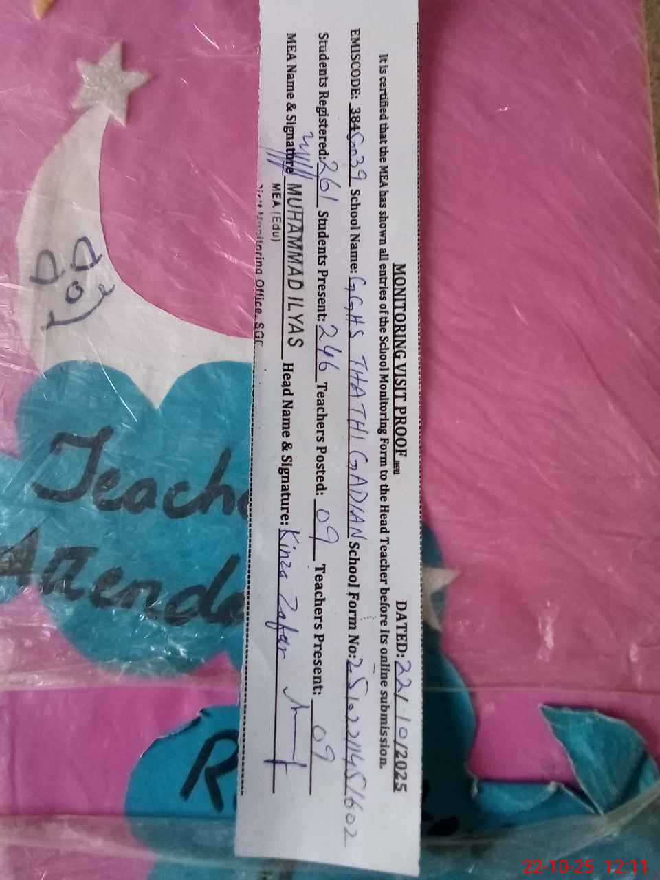 | EMIS Code: 38450039 | Name of School: GGHS THATHI GADIAN SAHIWAL | |||