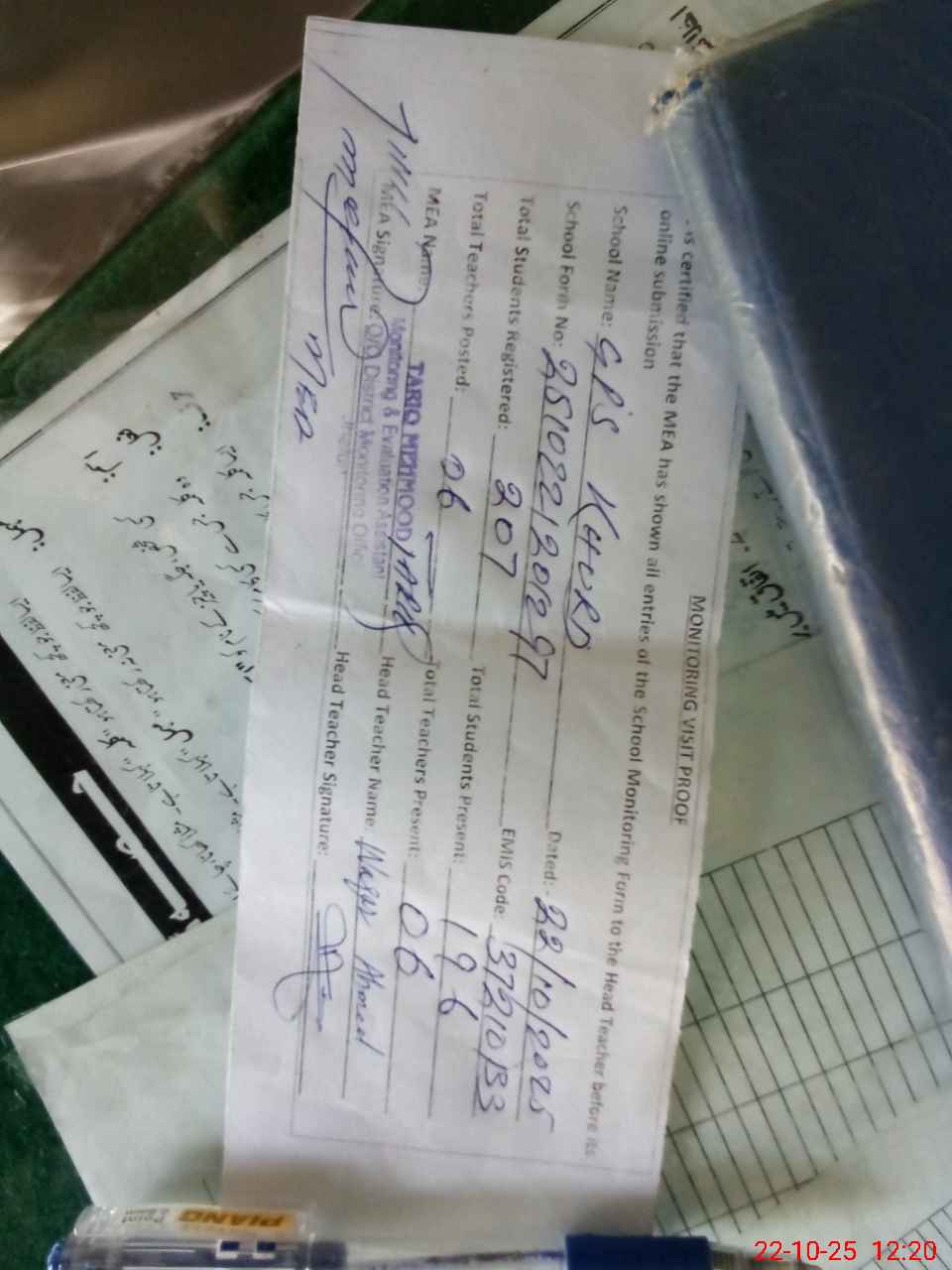 | EMIS Code: 37210133 | Name of School: GPS KHURD | |||