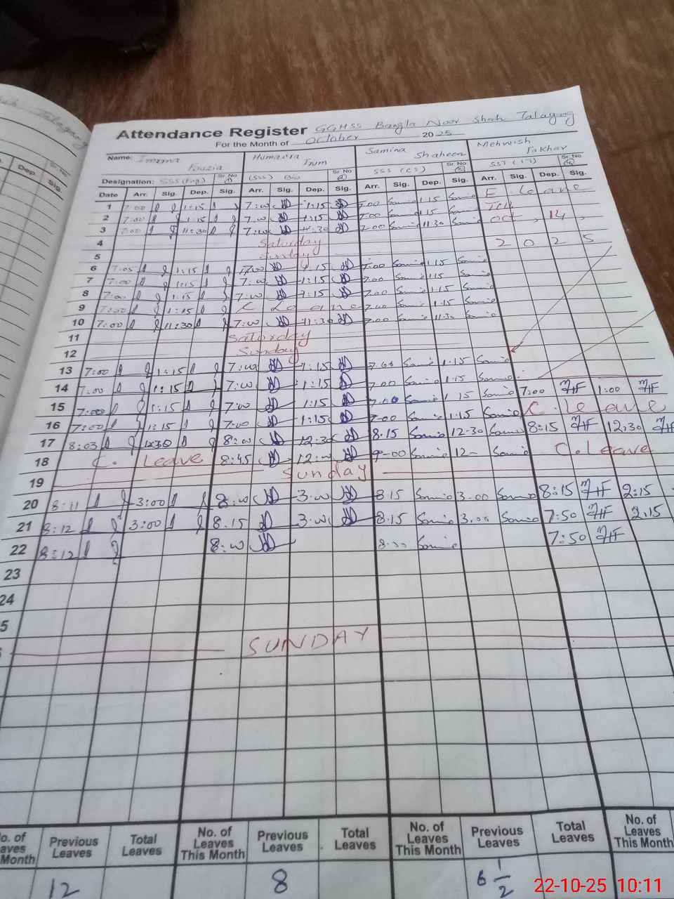 | 37**** | Ra**** Bi**** | SST | Regular | 0 | 0 | 0 | 0 | 0 | 0 | 0 | 0 | 0 | Absent (Un-Authorized) |