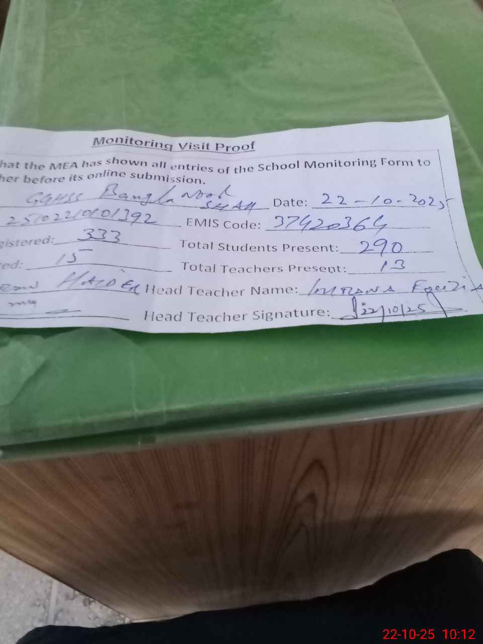 | EMIS Code: 37420364 | Name of School: GGHSS BANGLA NOOR SHAH | |||