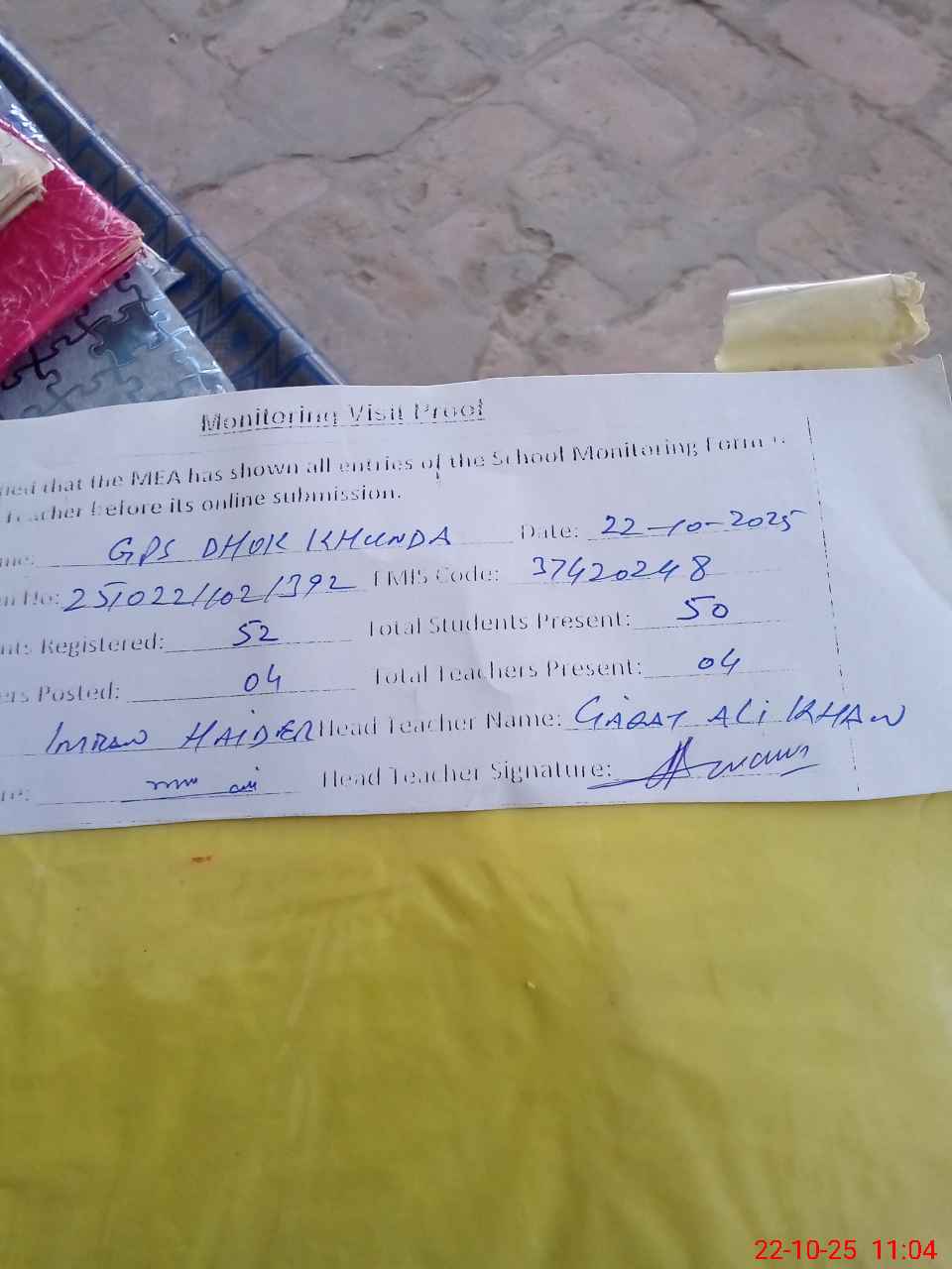 | EMIS Code: 37420248 | Name of School: GPS DHOK KHUNDA | |||