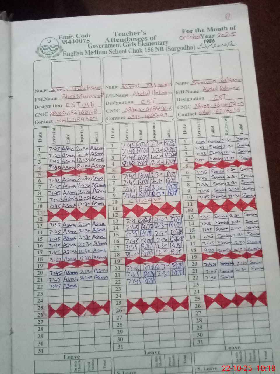 | Name: As**** Ru**** Designation: (School Headmaster's/Headmistress's) EST (AT) Phone/Cell Number: 03**** |