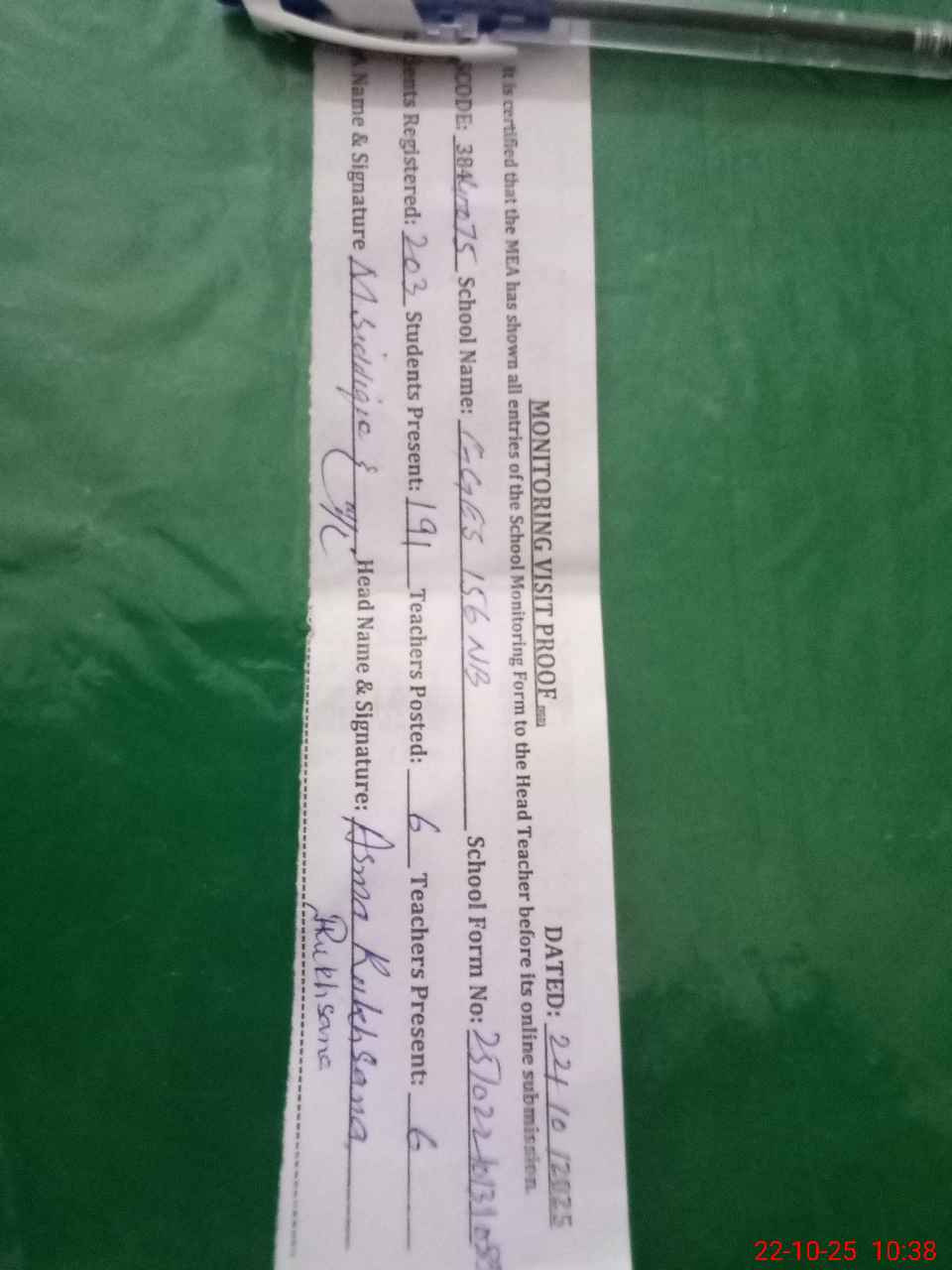 | EMIS Code: 38440075 | Name of School: GGES CHAK NO 156 NB | |||